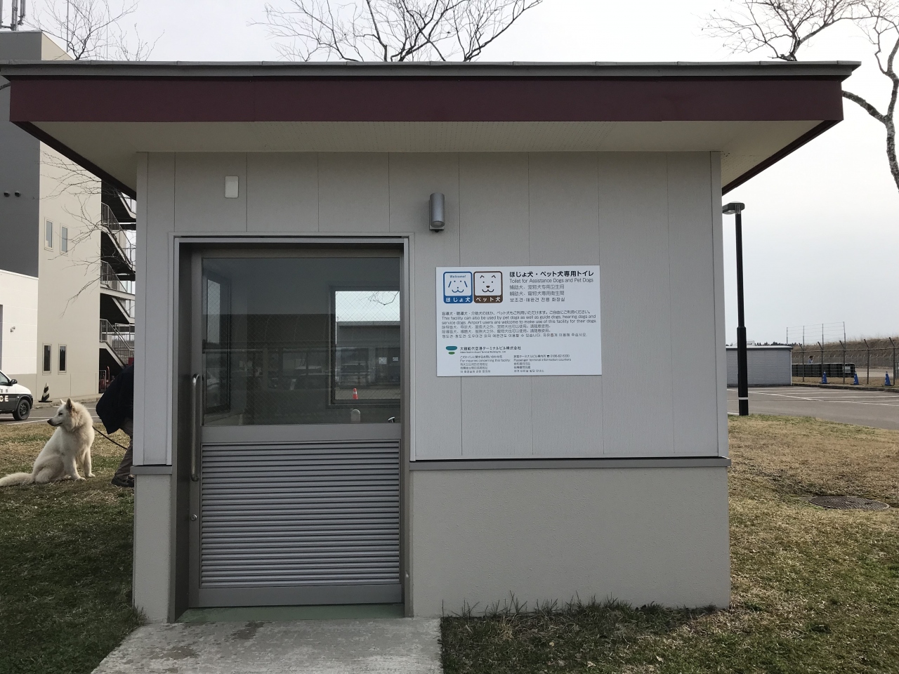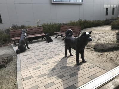 秋田犬の原産地だけあって、空港の外には秋田犬の銅像が3匹。犬用のトイレもある。