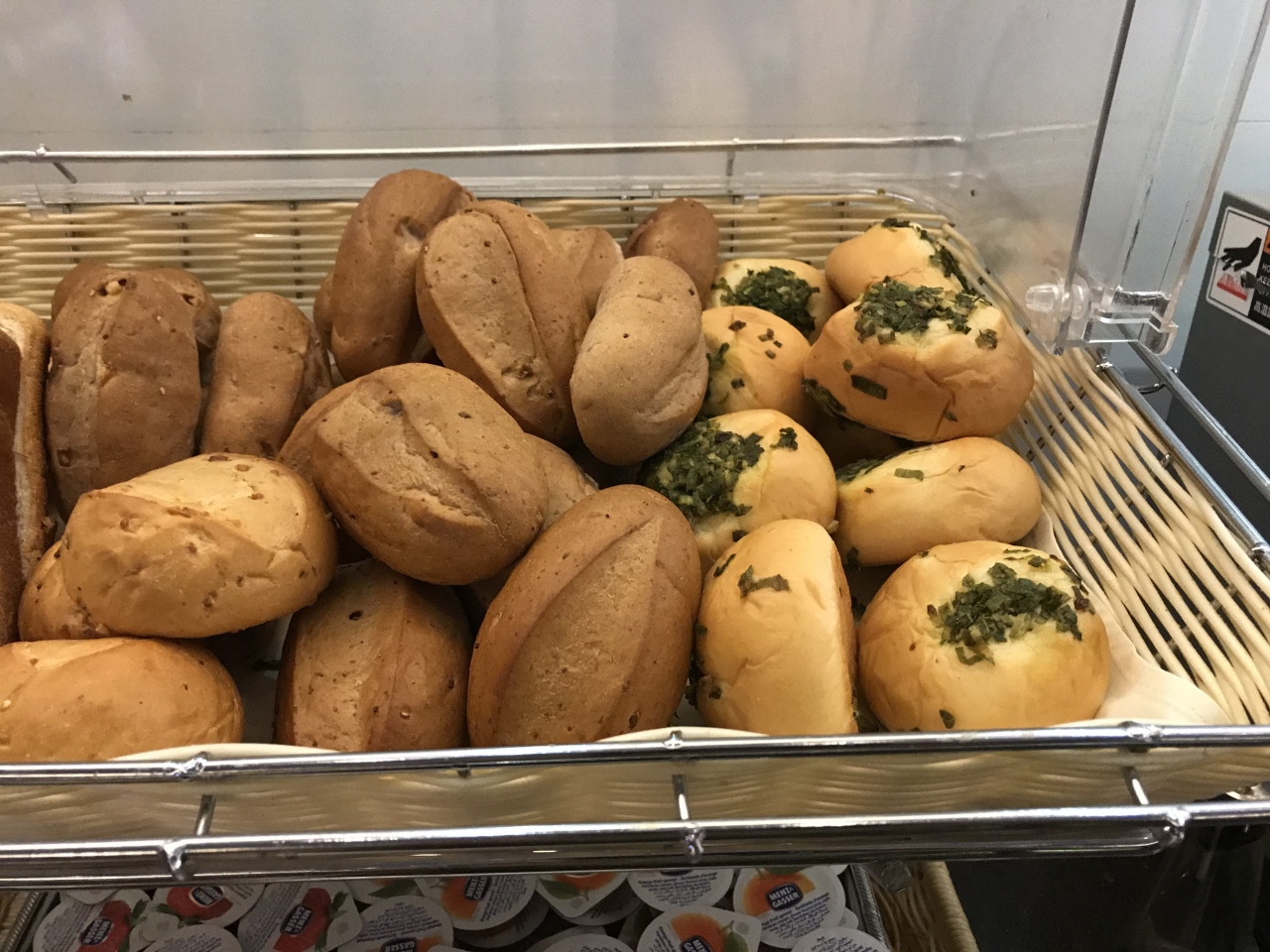 ラウンジ飯の中には台湾のコンビニに置いてあるような感じでフランクフルトがあったり、関東煮(いわゆる日本のおでん)もがあったりする。パンもダイナスティラウンジ(チャイナエアライン)よりも種類が豊富。台湾では一般的な葱パン(甘めな生地の上に葱がトッピング)もある。