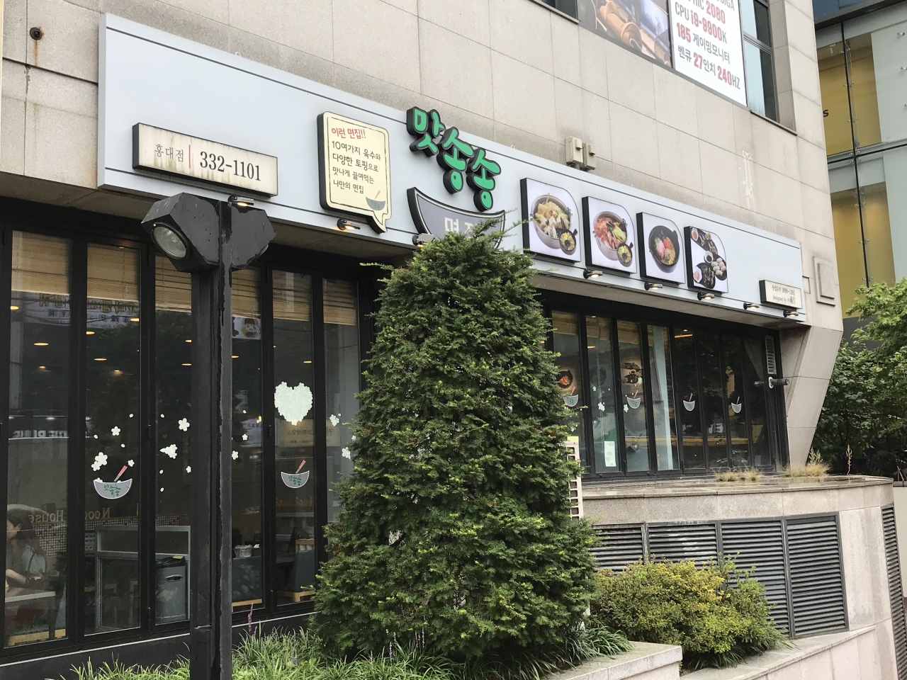 釜山発祥のひとり鍋の店。ソウル1号店は地下鉄2号線弘大入口(Hongik Univ.)駅 8番出口を出て、カカオフレンズストアの隣のビルの1階にある。入口がビルの中しかないので注意!
