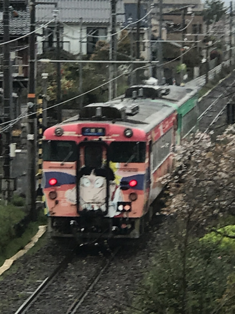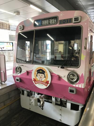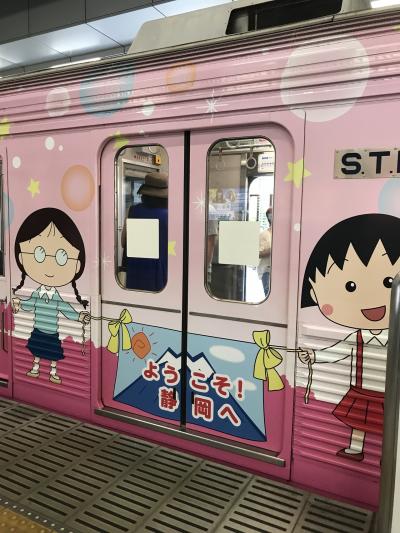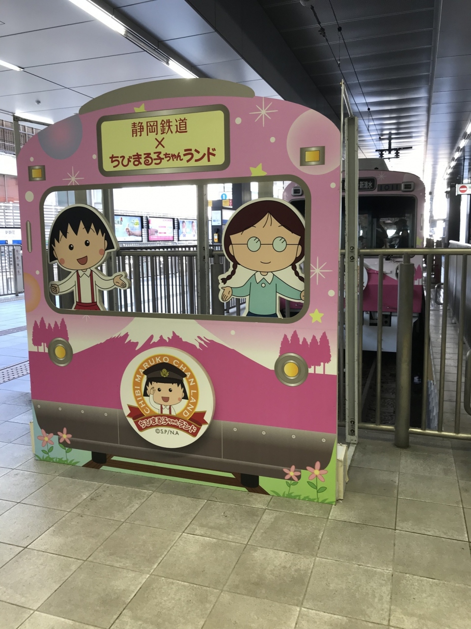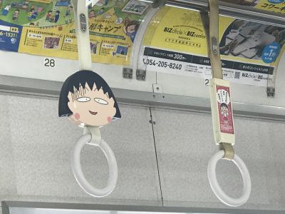 「shizuoka rainbow trains」と称する新型車両A3000型も良いが、おすすめは「ちびまる子ちゃんラッピングトレイン」。