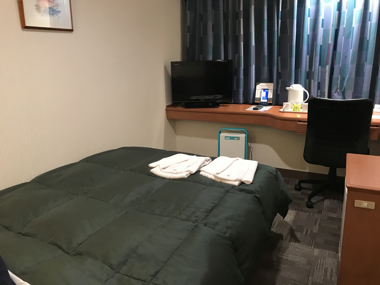 シングルルームに宿泊。ベッドサイズは普通だが、部屋は広く快適。机も余裕がある。ロビーも広く、フロントスタッフの対応も良い。