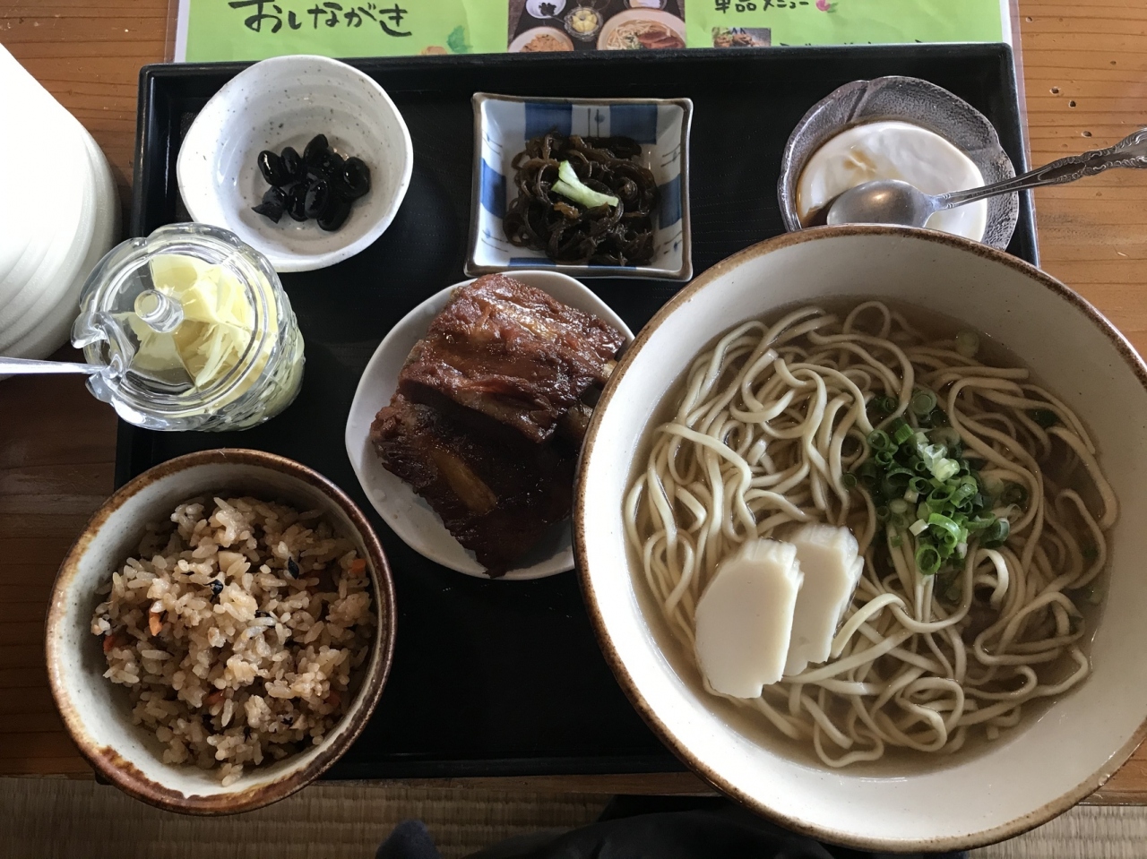 本ソーキそばのセットメニューを注文。スープは臭みが無く、透明。さっぱりしているがコシがある。スープを大切にしたいのかソーキはそばと別になっているのも良い。また、