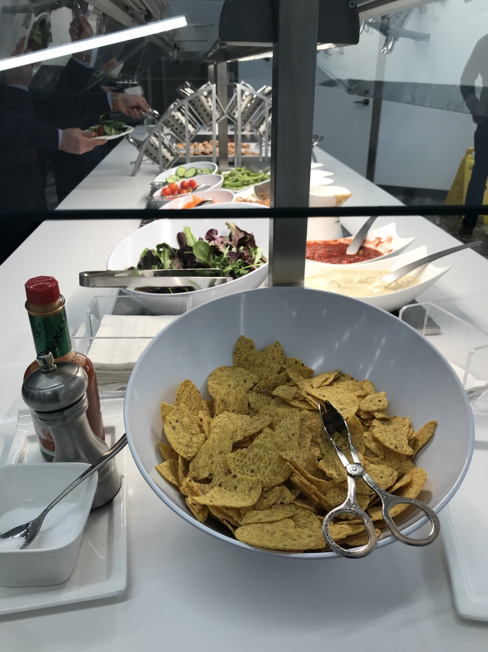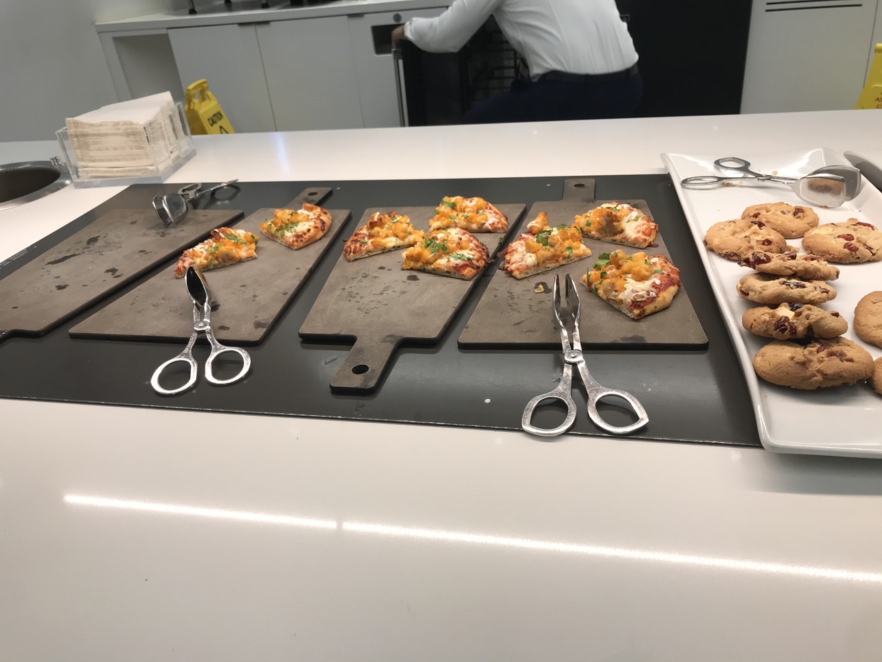 フードはサラダ、ピザ等アメリカのラウンジの標準的なメニューが中心。スープは2種類。ニューヨーククラムチャウダーもある。味は普通かな。