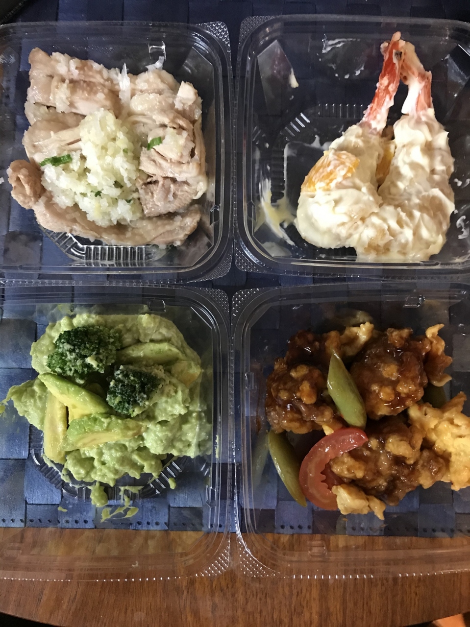 夕方だったせいなのか看板商品と言われている大海老マヨ等が既にパック詰めされており、3種類を購入したらサラダ1パックをおまけしてくれました。