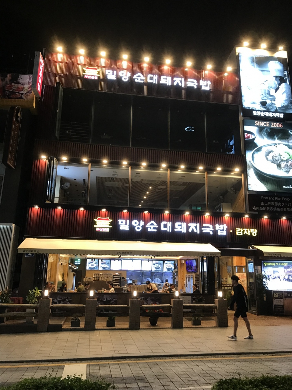 釜山海雲台にあるデジクッパの専門店。地下鉄海雲台駅からビーチに向かうメインストリート(亀南路/GUNAM-RO)にある(古いガイドブックやWeb情報では昔の店の場所が出ている場合があるので注意!)。