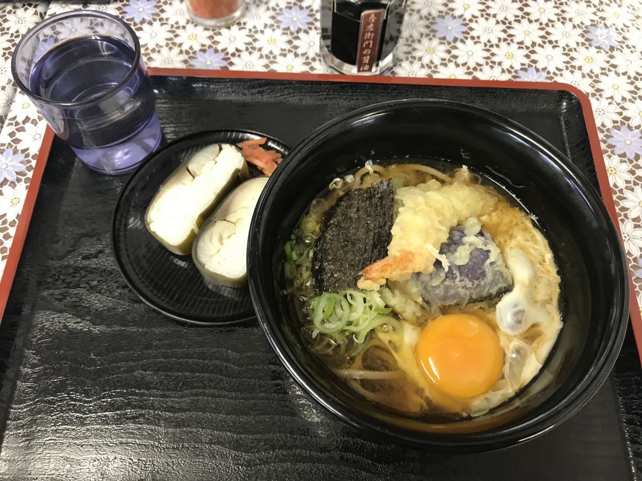 天とじ蕎麦(天ぷら+月見)と棒寿司のセットをいただきましたが、蕎麦はつゆの感じがちょうど良く、手を抜いていない。また棒寿司は納得の味。