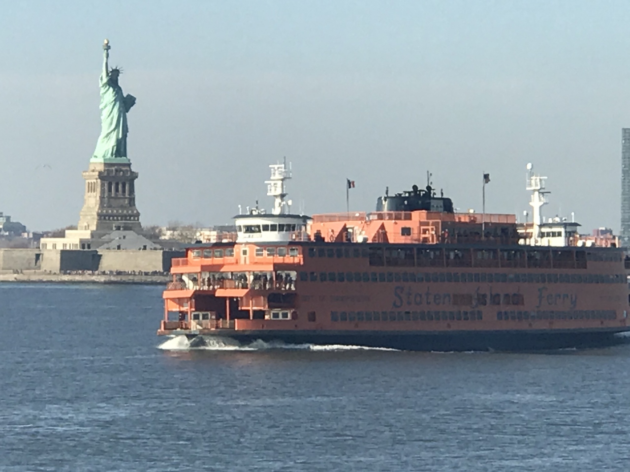 自由の女神のシャッターチャンスは、スタテン・アイランド行(往路)