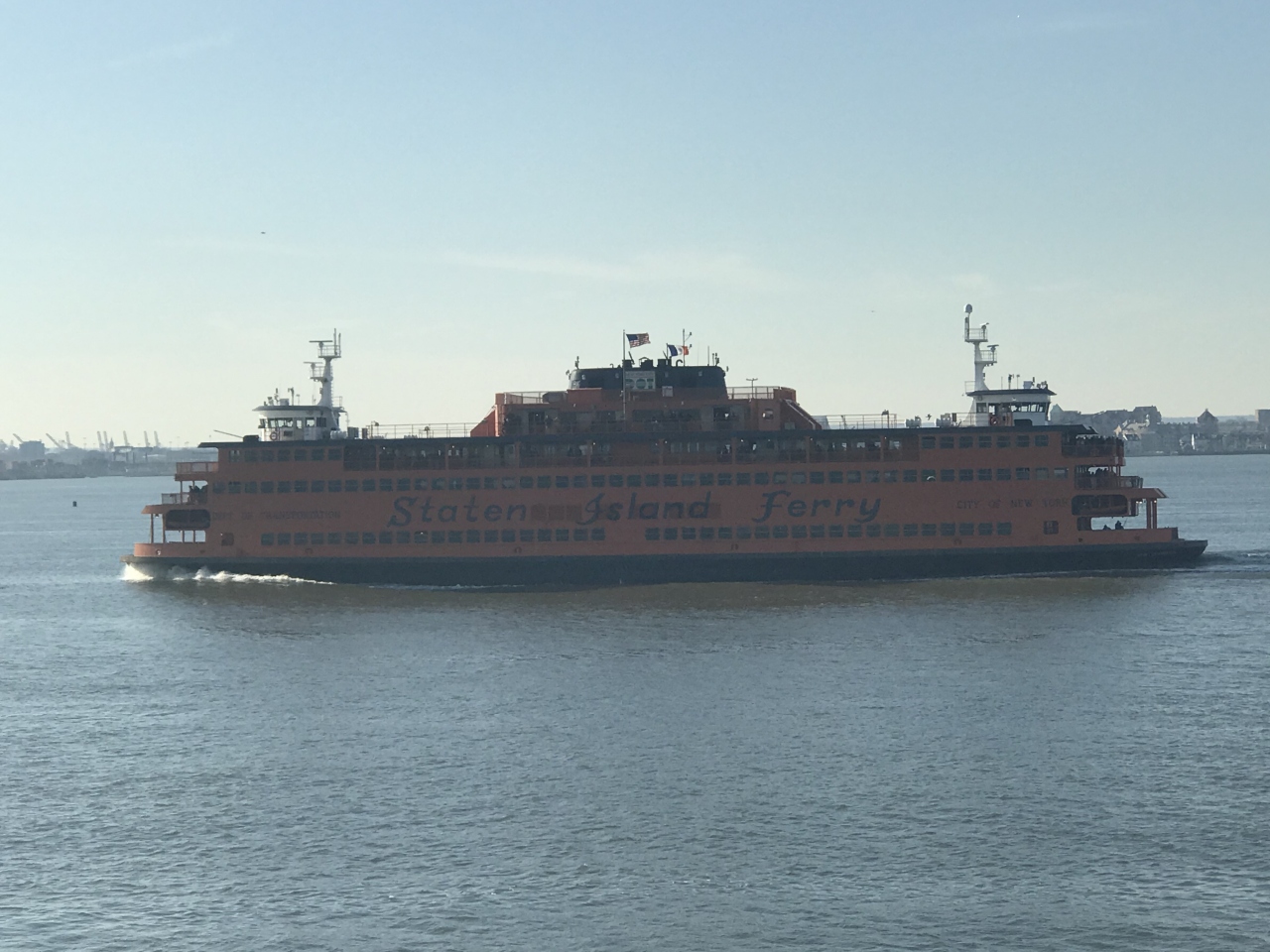 マンハッタン区とスタテンアイランド区の間8.4キロを25分ほどで航行するフェリー。昼間はだいたい30分間隔で運航(24時間運航)