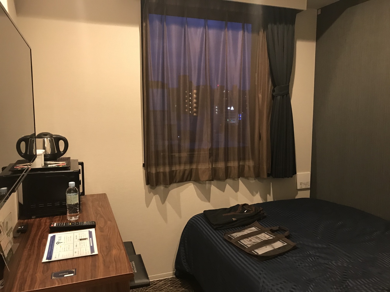 シングルルームに宿泊。新幹線側の部屋のせいなのか、夜遅くまで新幹線の音が聞こえる。窓を閉めても音がしたので、神経質な人にはお勧めできないかも。広さは10平米少々といった感じ。正直狭いが寝るだけならちょうど良い。バスルームは小さめのユニットバスだが、最上階に大浴場があるので問題なし。