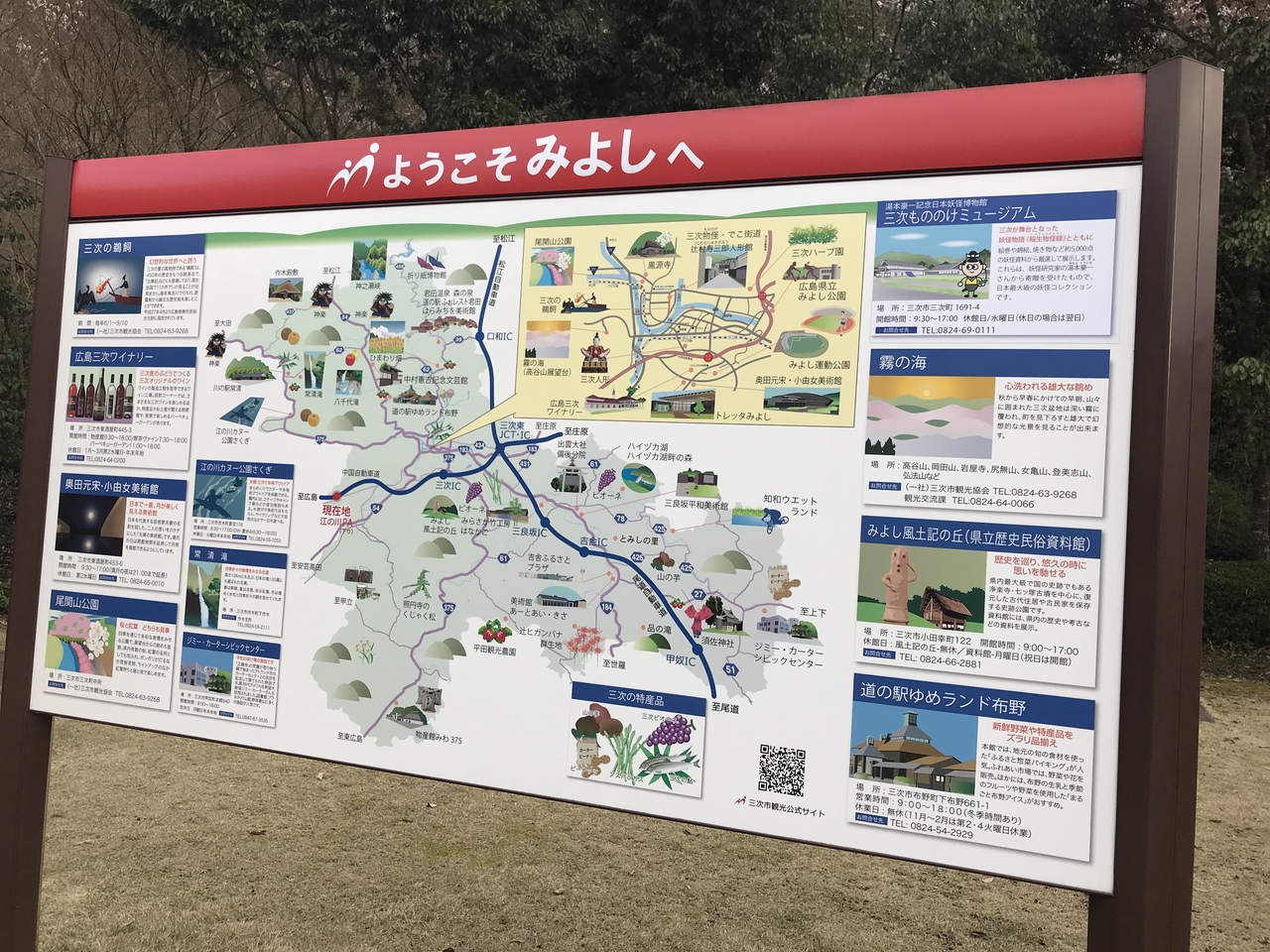 広島と松江、米子を結ぶ高速バスはここで小休憩(トイレ休憩)するため、小さな売店があって地元(三次エリア)のパンやジェラードを販売している(ただし、営業時間は上り線と下り線で午前と午後で分けているようで、開いていない時間が多い)。