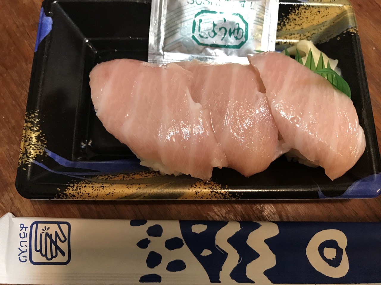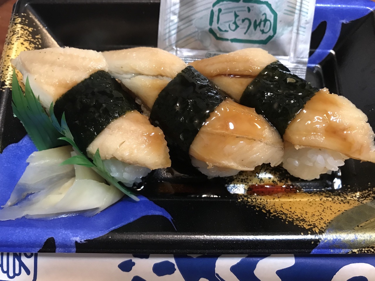 持ち帰りずしは地下2階の鮮魚売り場にもあるのでそちらの方が...とも思ってしまうのだが、この店も百貨店内で製造した出来立てを販売しており、穴子、大トロ等をいただきましたが、ネタはさほど悪くない感じ。