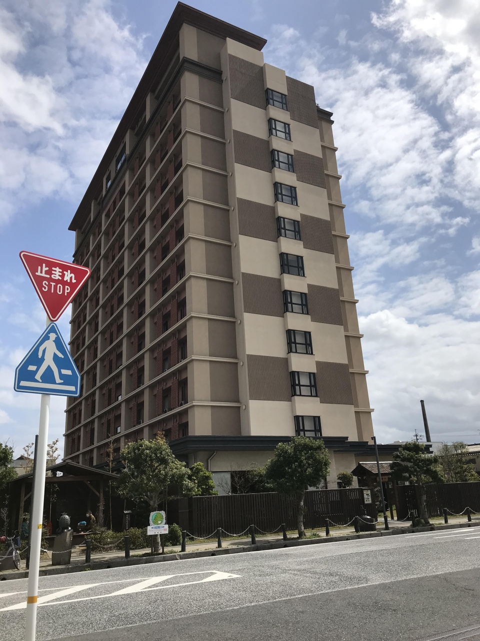 JR境港駅の目の前にあります。一見高級旅館のような12階建ての建物は境港では目立つ存在。対岸の美保関(松江市)からでもはっきりわかる。