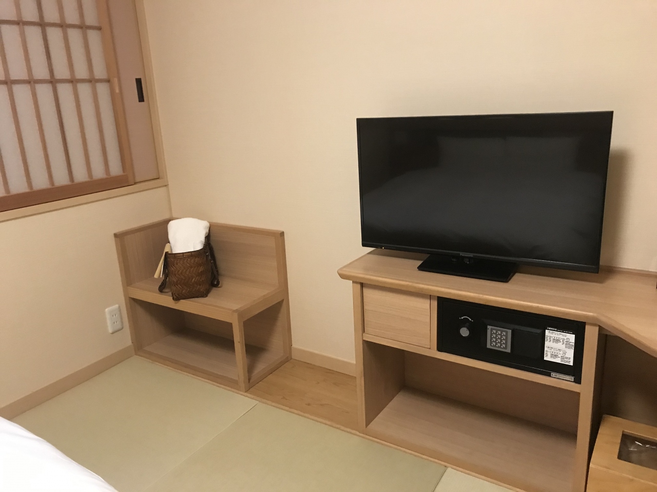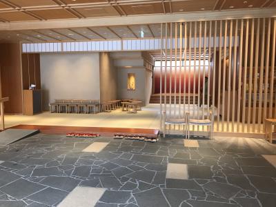 チェックインの後、靴はロッカーに入れ、そのままエレベーターへ。エレベーターも畳敷き。畳は縁が無い正方形。汚れたら取り替えやすいのかも。