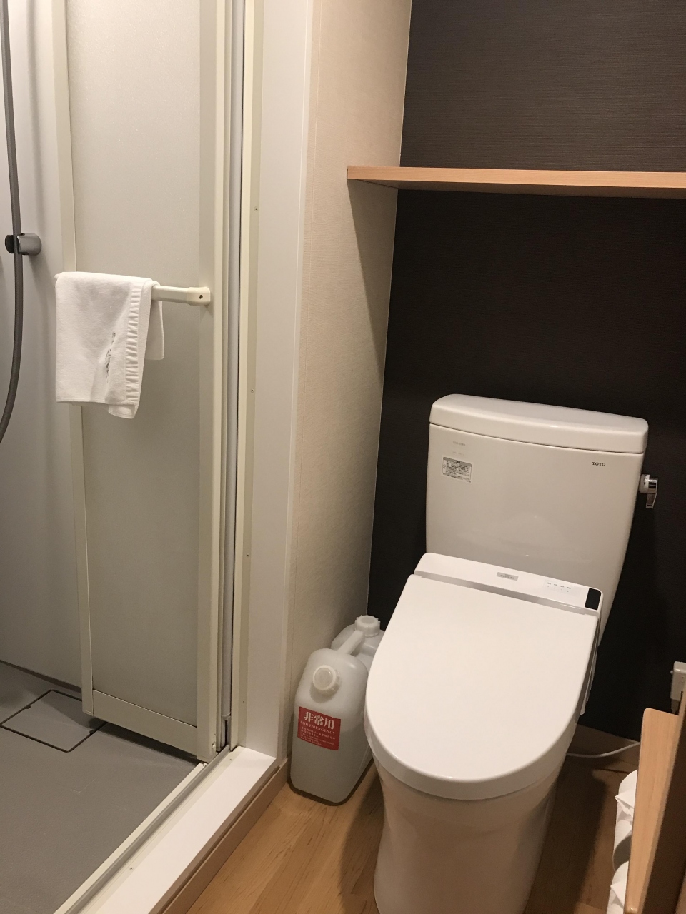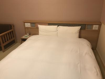 ベッドは低め。ふかふかで寝心地が良い。バスルームはシャワーだけだが、12階に温泉大浴場があるので、問題なし。