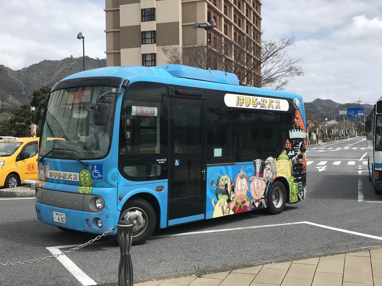 境港市のコミュニティバス。地元の日ノ丸自動車が運行受託している。車体には水木しげるさんの作品がラッピングされている。