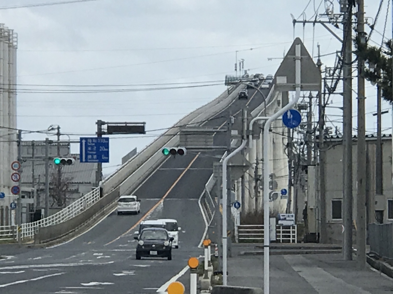 軽自動車のCMで有名になって以来、一度行ってみたくなり、レンタカーを運転して渡ってみたが、「べた踏み坂」との愛称のとおり多少アクセルは強めにすることが必要。また、松江側に行く際はエンジンブレーキを活用することをお勧めする。
