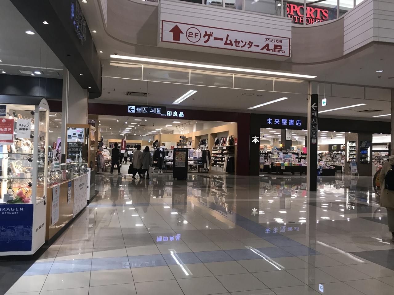 建物は2棟に分かれていて、東館がイオン(スーパー)、西館が専門店街、映画館。