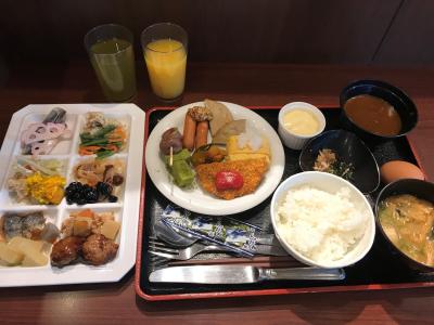 ホテルの外観に某旅行サイトで岡山県1位という言葉に惹かれ、フロントで朝食を追加。