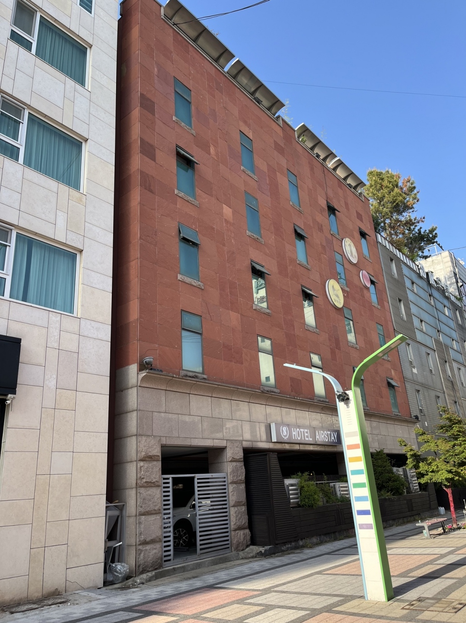 仁川国際空港駅から空港鉄道(A'rex)に乗り約7分(ソウル駅からだと約50分)。雲西(Unseo)駅より徒歩5分ほどの商業地域の中にあります。仁川空港利用者をターゲットとしたホテルで1階はフロントと駐車場。付近には同じようなホテルが多く、看板をしっかり確認する必要がある。なお、モーテルと位置づけできなくも無いが、日本のモーテルのイメージでは無く、欧米でよくあるものである。