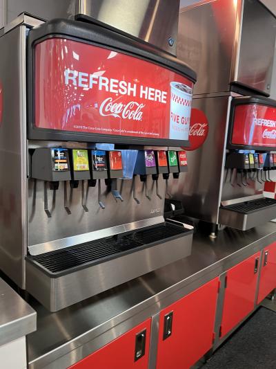 パテが2枚のレギュラー(Regular)を注文。15種類の無料トッピングはマヨ・ケチャップ・マスタード・オニオン・レタス・ピクルス・トマト・グリルドオニオン・グリルドマッシュルームをチョイス。後で聞いたら「All The Way」があると聞く。次回からはそうしよう。ポテトのサイズを聞かれるがレギュラーに(後で失敗に気づく)。それとミルクシェイクを注文。シェイクも色々トッピングできるのだが、ストロベリーとクッキーをトッピング。また飲み放題のソフトドリンクもある。