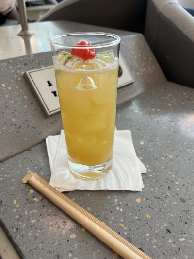 最初の段階では甘さ控えめなのだが、イートインスペースの端には氷とシロップが置いてあってセルフで追加可能。甘みが薄くなった時や、ぬるくなった時に嬉しい。- 旅行時期