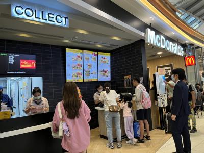 スワンナプーム空港内にはマクドナルドが数件あるがこちらは出国審査後のレストラン街にあり、出発・乗継客でいつも混雑している。雰囲気は他の国のマクドナルドとほぼ同じ。