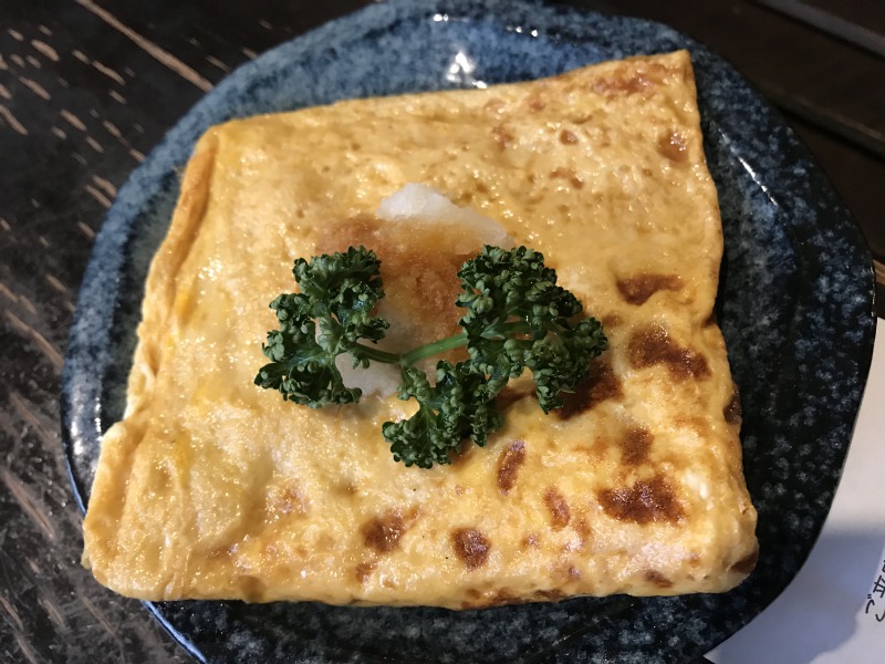また、玉子焼きはふわふわしているが、全く甘くなく、出しの味が丁度良い感じに出ていて、ツマミにおススメ。おにぎりは一人では食べ切れない大きさ。