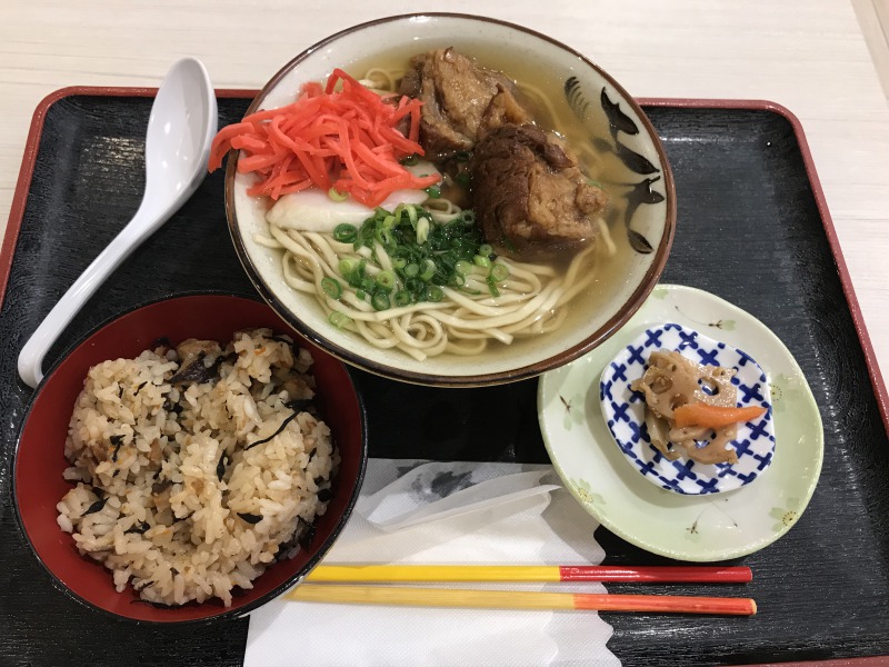ソーキそば定食と沖縄ぜんざいをいただきましたが、ソーキそばはカツオだしと昆布の出汁がちょうど良い感じ。ソーキも箸で切れる柔らかさ。それとそばの量も多めです。