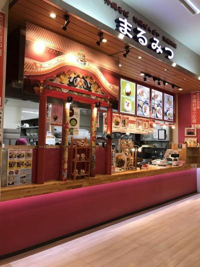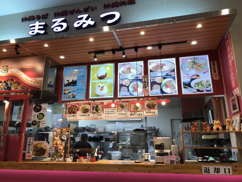 どちらかと言うと東京や大阪でも食べれるお店が多い中で少し沖縄らしい外観。フードコート唯一の沖縄そばの店の模様。