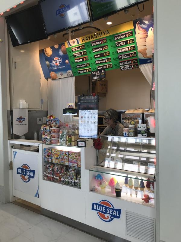 那覇空港国際線ターミナル2階の出発ロビー内にあるブルーシールアイスの専門店。この店限定のハイビスカスソフトが有名らしい。