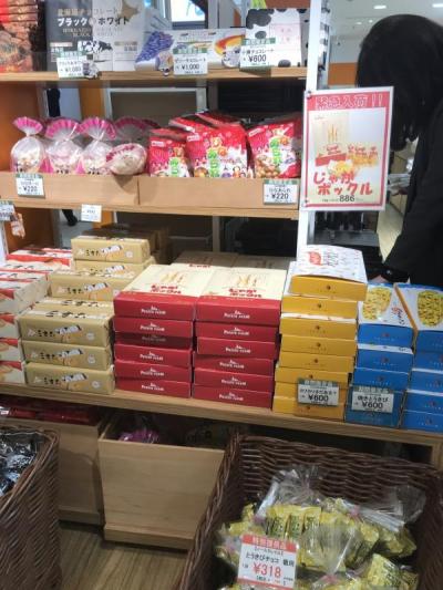 六花亭、白い恋人、ロイズは販売していませんが、じゃがポックル、もりもと(ハスカップジュエリーなど)、とうきびチョコといったスイーツ、カツゲン、リボンナポリン、札幌クラシックといったのドリンク・酒等、北海道限定商品の多くが手に入る。