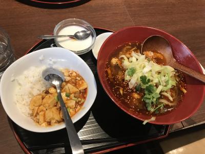 数種類ある刀削麺の中から酸辣刀削麺のセットを注文。セットにするとマーボー丼(または炒飯)と杏仁豆腐が付きかなりお得。寒い日だったので少し辛い刀削麺は温まりました。- 旅行時期