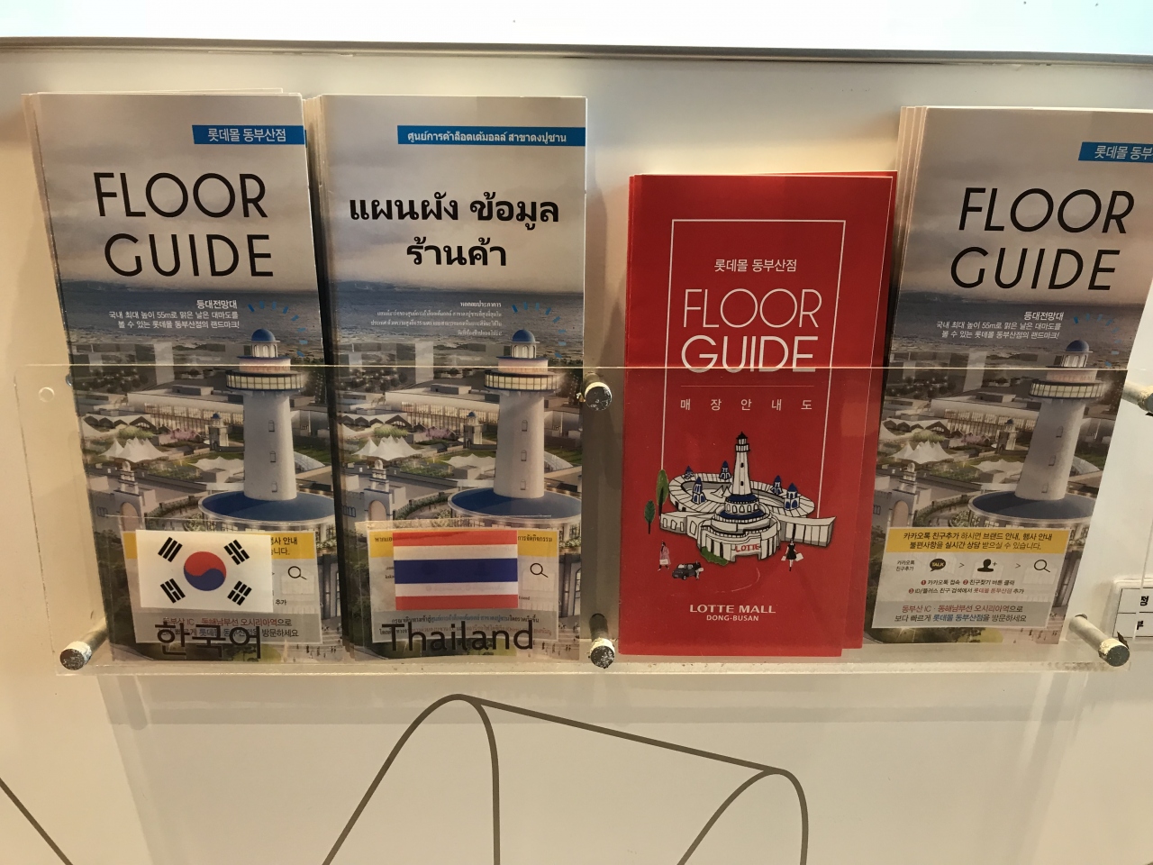 アウトレットモールのブランドはDKNY、UGGA、ZAPAZ、KENZO、NIKE、ニューバランス、グッチ、ナインウエスト、アディダス、サムソナイト、FURRA、フェンディ―、トミーゲス、JEEP、NBA等。高級ブランドとヤングブランドが割合よく配置されている感じ。レストランも有名店や食べ歩き可能な店が多く、ロッテマートや映画館などがあり、1日過ごすことも可能。ただし、韓国の法律でロッテマートは月2回の日曜日が定休日なので、バラマキ土産を購入する際は注意が必要。また、ガイドマップは韓国語、英語、日本語、中国語、タイ語があるが、韓国語と英語以外は切れている場合が多いようで、見つけたらゲットしたほうが良いかも。- 旅行時期