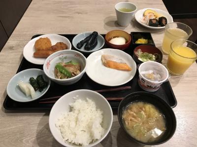 朝食はドーミーインだけに充実。仙台名物牛タンカレーやしそ巻き等ご当地料理もあっておなか一杯になりました。また夜は夜泣きそば(半ラーメン)の無料サービスもあり。