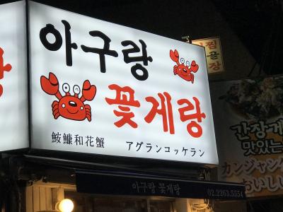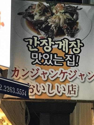 蟹の醤油漬け(カンジャンケジャン)の名店。地下鉄3号線東大入口(トンデイック)駅から坂を下って徒歩3分くらい。地下鉄2号線、4号線等の東大門歴史文化公園駅からも徒歩10分程度で行ける。