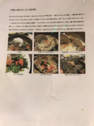 メニューは英語、日本語、中国語で書いてありますが、お店のスタッフ(マスター)が日本語でケジャンの食べ方を優しく教えてくれます。