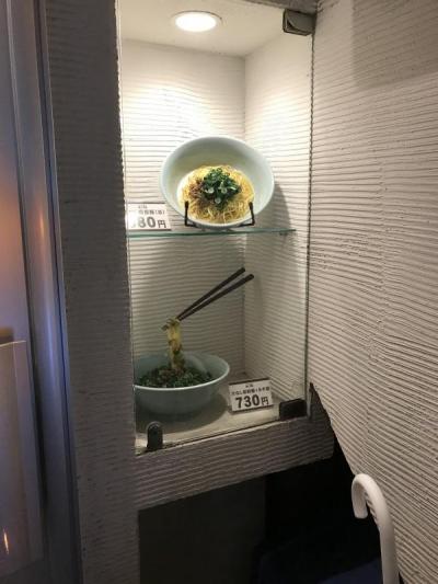 まずは、自販機で食券を買って外で待つ。10分ほどで店内へ。お店は細長いカウンター席のみ。