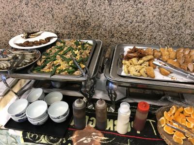 店内は普通の居酒屋さんですが、朝、昼は隣の部屋を使ってバイキングを実施。バイキングレストランでは珍しい魚の煮ものやししゃもなどが充実。カレーもあり。どれも味は悪くない。ただし朝も昼もメニューはあまり変わらない感じもする。- 旅行時期