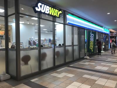 ファミリーマートとのコラボ店舗でコンビニの奥にあるといったほうが良いかも。注文カウンターは他のサブウェイと同じですが、飲食コーナーはファミリーマートと共用で10席のみ。時間をずらさないとここで食事するのは厳しいかも。ただし、飲み物やデザートをファミリーマートで調達することは可能。- 旅行時期