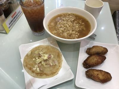 「芝士煙肉茸洋葱印度薄餅」はインド風の薄い生地に玉ねぎ、チーズ、きのこがのったピザみたいなもの。あっさりしていて美味しい。「生炸雞翼」は手羽先。中華風であるがスパイスがきついわけでなく食べやすい。出前一丁は香港定番の味(5ドル追加になる)。また、レモンティー(檸檬冰紅茶)は少々濃いめ。氷が解けるのを待ったほうが良いかも。