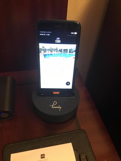 15階のメトロパーククラブフロアに宿泊。香港のホテルにしては充分な広さ。枕元には最近話題のHandyが置いてあり、無料でスマホが使用できる。また、フルーツがさり気無く置いてあった。