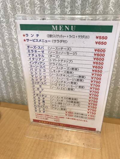 メニューは色々あるのだが、ランチ(日替わりのパスタ+ライス+サラダ)が500円、サービスメニュー(訪問した日はピカタでした)は650円と激安!しかも普通盛でも相当なボリューム。麺の量が1.2倍の中盛、1.5倍の大盛があるが、通常は普通盛で充分。