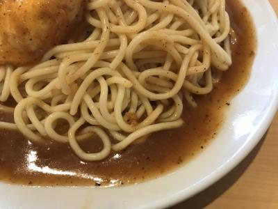 サービスメニューのピカタを注文。麺の上にピカタ(豚肉が入った卵焼き)が麺が見えないくらいのっている。あんかけのソースはスパイスが効いているもののきつい感じではなくGOOD!麺はあんかけパスタらしく柔らかめの太麺。最後まで飽きることなくいただけました。