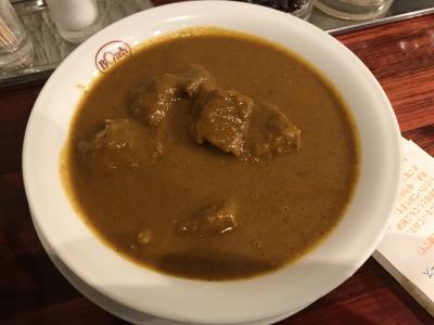オススメのビーフカレー(中辛)を注文。甘口、中辛、辛口から選べるがスパイスが入って入る方が美味しいので、中辛が一番人気とか。確かに辛さはさほどではなくちょうど良い。ルーはバター多め。でもコッテリではない。
