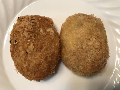 メニューはコロッケ類単品、唐揚げ、弁当など。コロッケは普通の店の倍くらいの価格。ただしこだわりは相当なもので、ジャガイモは手で潰したのか、クリーミーな部分と固体の部分が上手く混ざっている。肉もちゃんと味がします。また、カレーコロッケもいただきましたが、かじった途端、カレーの香りがして美味い(カレーコロッケは何もつけないで食べた方が良い)。