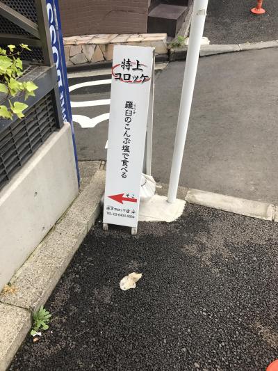 麻布十番にある高級コロッケ店。麻布十番商店街を抜け六本木ヒルズ方面に向かってひとつ細めの道に入った所にあります。通りにある小さな看板?が目印。