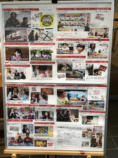 お店の前には、テレビ放映時の写真がいっぱい。また、3名程度が限界ですが、店の軒先きに小さなイートインスペースあり(お茶もあり)。その場で食べると言えば暖かいものを出してくれます。