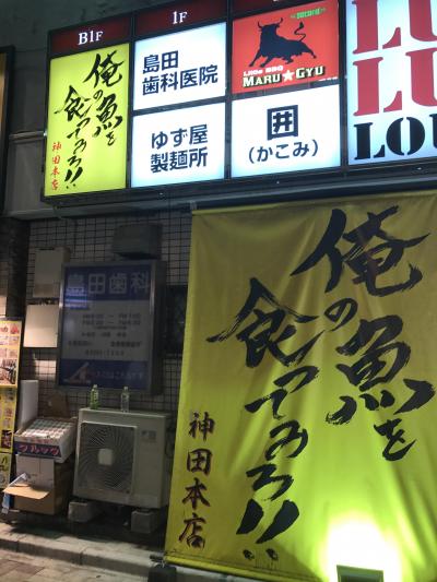 魚がメインの居酒屋。この店が一応本店だそうでJR神田駅北口から東京駅方向に戻って右側のビルの地下1階にある(店の名前が入った大きな幕があるのでそれが目印)。