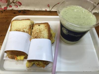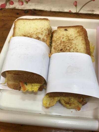 今回はスペシャルトースト、キウイジュースを注文。トーストは半分に切って持ってきてくれる。中身はハム(ランチョンミート?)、卵焼き、チーズ。卵焼きには人参、キャベツなどが入っていてふわふわの卵の中にシャキシャキ感がある。なんとなく韓国風であるが、美味しい。韓国料理に飽きた時や朝食にお勧め。- 旅行時期