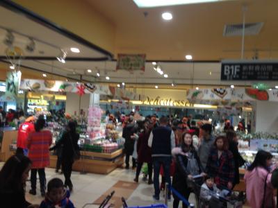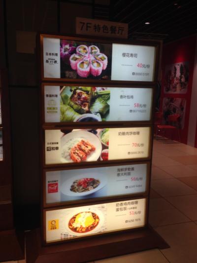1階、2階にはZARA、地下1階と5階にフードコートが、5階にはレストラン街(中国料理中心)。地下1階のフードコートでは台湾風のフランクフルトや日本風の今川焼が焼かれていて、懐かしい。そのほかの売り場も日本のイトーヨーカドーの雰囲気(混雑しているので少し前の感じですが)。
